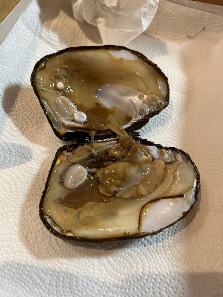 General summary: Took in pearl farm tour in late morning. The pearl is the Tennessee State gem. This is the last fresh water pearl farm in the U.S., started in the 1970s by a WWII vet who came home with his Japanese wife. Her family did pearl farming there and brought the techniques over after determining this was the most suitable location. Bob, who now owns the pearl farm, marina, and RV park led the fascinating discussion. The famous pearl necklace of Elizabeth Taylor, “La Perigrina” (with the exception of the large teardrop shaped natural pearl at the end), is made from pearls from this location. They have a great selection of jewelry for sale and provided a delicious BBQ lunch after the talk.
