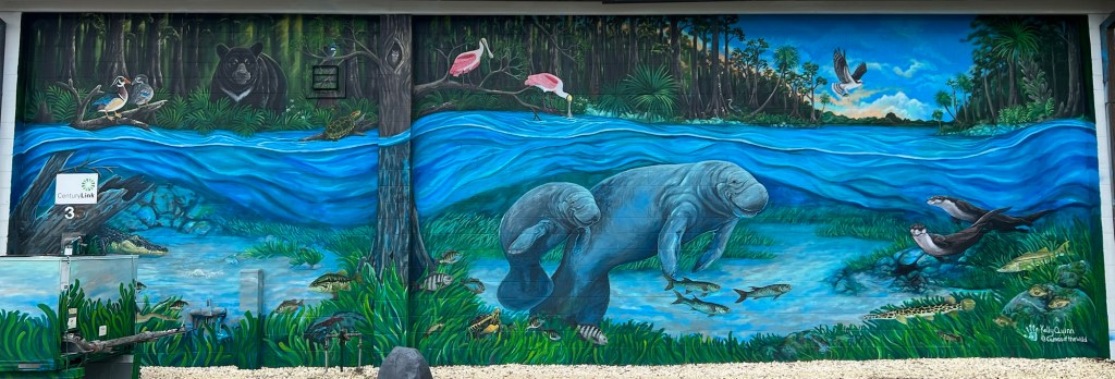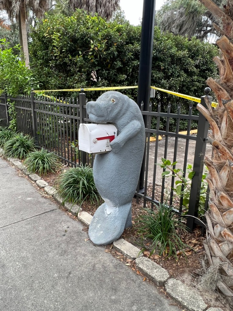 This town is ALL about manatees. It has the largest concentration of manatees in any Florida city during the winter months because they need warm water (over 68 degrees) to survive and the streams here provide that. As a result, there are many ways to see them – we chose a guided snorkel tour. I’m certain this will have been one of the biggest highlights of our entire trip. Must have seen about 30 and some swam so close I could have touched them (but you aren’t supposed to). Hoped to get a selfie with one, but this proved difficult to orchestrate.