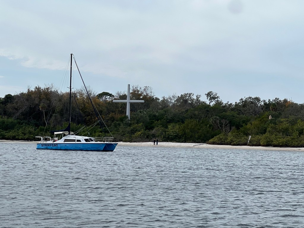 This anchorage is nicknamed the “Holy Hole” by locals due to this cross on land. It is a memorial to the DeSoto expedition as one of the purposes (aside from obtaining land, gold, and other riches) was bringing Catholicism to the New World.