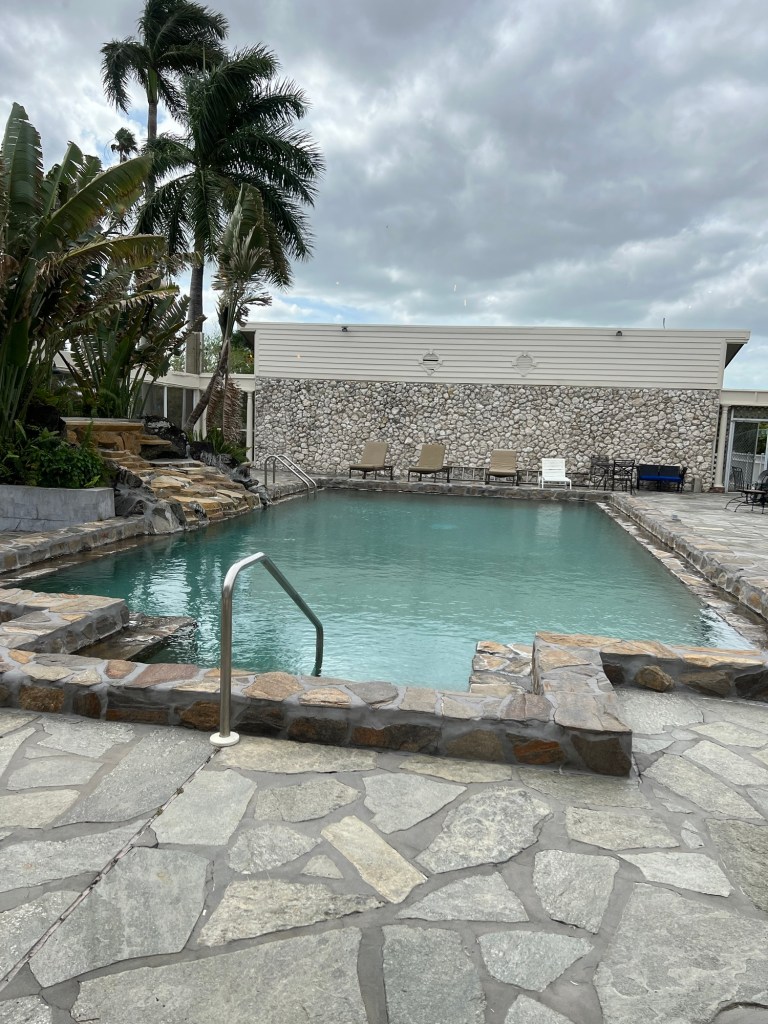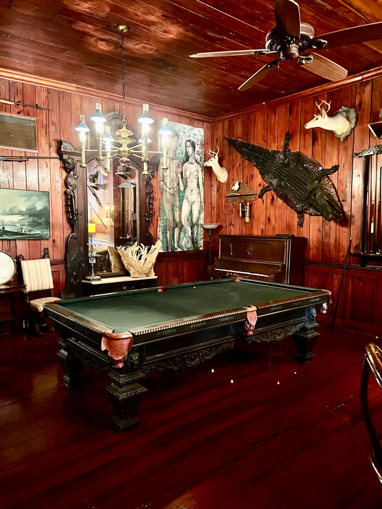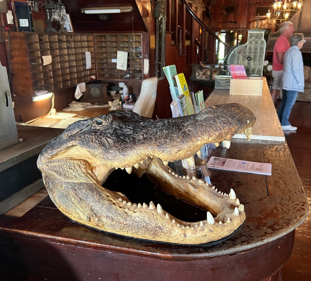 Boater information: The Rod and Gun Club was right up our alley – a perfect mix of quirky and historic. Does need some upkeep and not for those wanting 5 star pampering, but there are projects clearly ongoing which may improve that. A must see in this area! http:rodandguneverglades.com Call to make a dock reservation and know it may take 12-24 hours to hear back. There were some shallow areas on approach (even near high tide) near the markers, but we never hit bottom. About 7 feet deep otherwise. The sea wall needs work, but that is in progress (new concrete wall and piers being replaced, in sections). As a result, there was only power in front of the small working barge during our stay, about 1/3 of the dock space at the moment. Lots of oyster shells attached to lower parts of the old piers, so our fenders took a beating at low tide. Dockside water is not potable but there was a hose we could use from the building to fill our tank with good water. There is one shower for transient use that needs better lighting, but the water was warm with good pressure. Nice screened-in deck with seating serving drinks and/or lunch fare and facing the waterfront. No gas or pump-out. No Wifi but 3-4 bars of consistent 5G on Verizon. There is a pool – not heated but seemed warm enough to us. No hot tub. They only take cash or check, for everything- moorage, hotel, meals, park pass. Was $2.50 a foot plus $2.50 daily for power. You can buy an Everglades park pass there ($30 for seven days). Small grocery store in town was reasonably stocked and takes credit cards. Several other restaurants nearby.