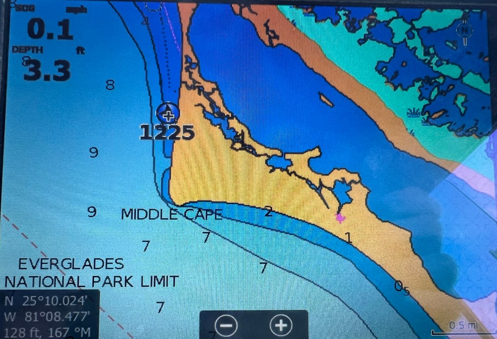 Starting location: Anchorage at Northwest side of Indian Key, near entrance of Indian Key Pass to Everglades City, FL