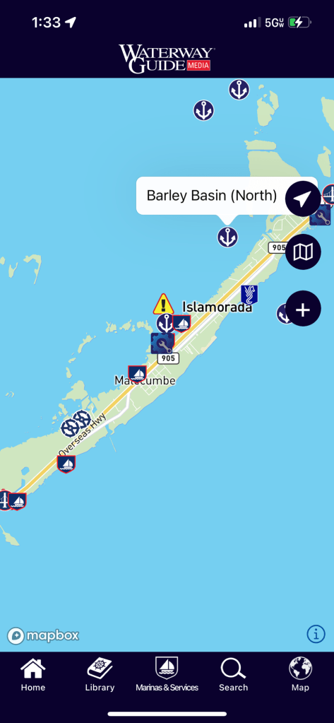 Ending location: Anchorage in Barley Basin, off Gulf side of Islamorada, FL. MM (approximately) 1160 on AICW.