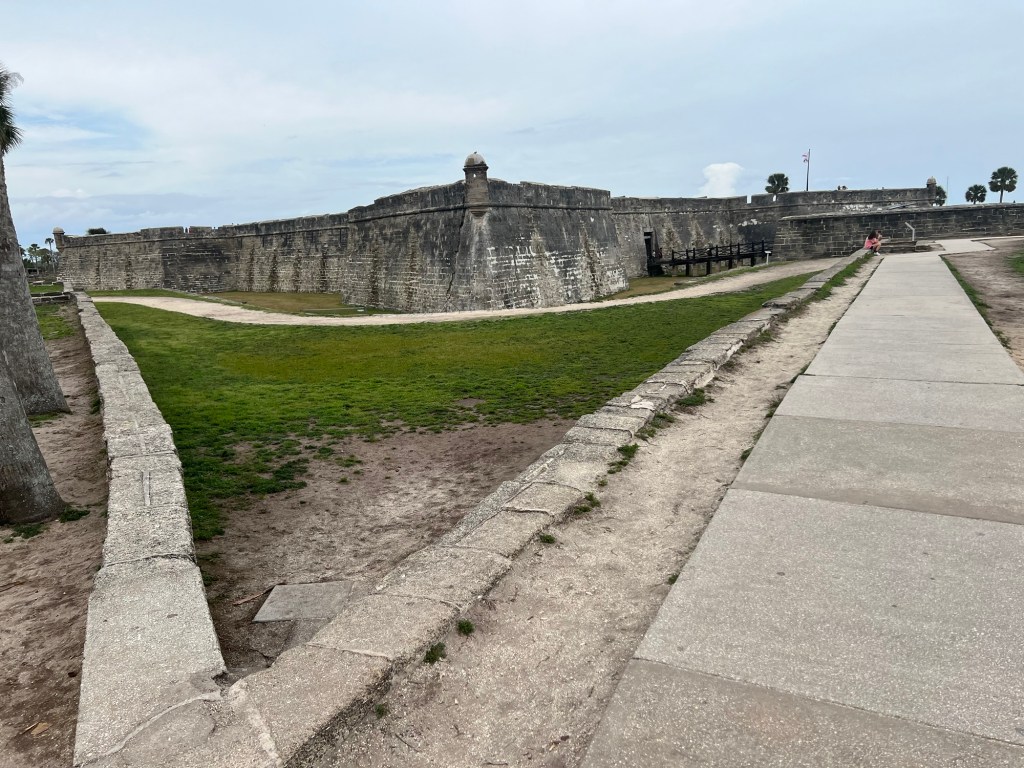 General summary: Calm night. Almost no wake from passing boats. Anchor held well. Motored to day dock for short walk with Cocoa, then moved on North through the ICW to St. Augustine and our reserved mooring in the city marina. On arrival, it was obvious this is a bustling tourist town. Many people milling about on the riverfront and large groups of schoolchildren on field trips with matching shirts depending on their school’s design. This city is the oldest continuously occupied European settlement on the continental US. It was first under Spanish rule under governor Pedro Menendez de Aviles in the 1500s, given to England 200 years later, then back to Spain, then to the US in the early 1800s. We spent two nights here and explored the historic city.