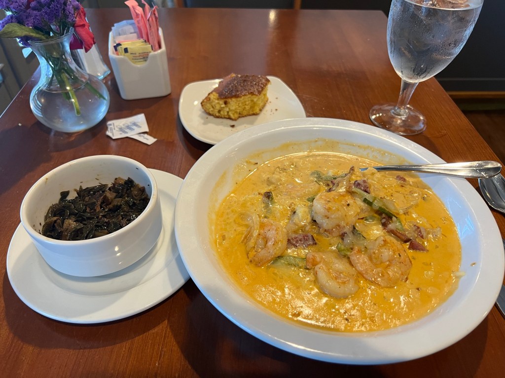 Stopped in a nearby cafe and had shrimp and grits 😋.