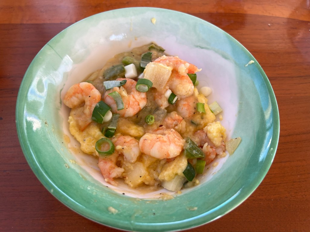 Tom made shrimp & gravy (SC specially, recipe from internet) for dinner. Yum!