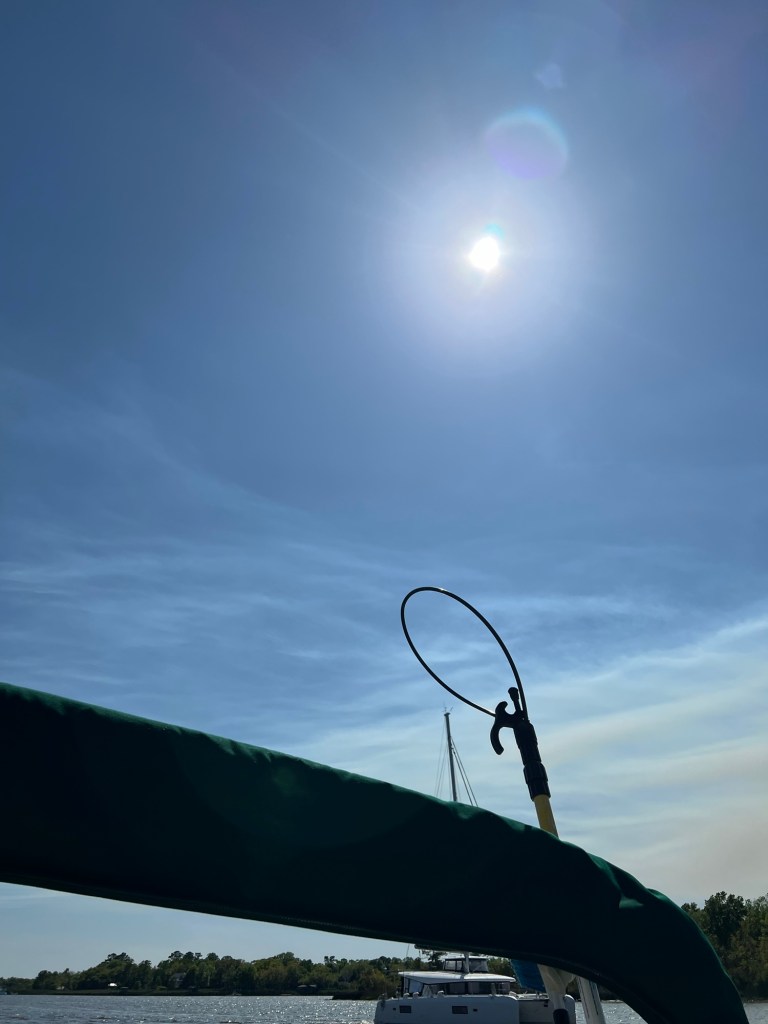 There was an eclipse the second day of our stay. We weren’t in the path of totality, but some nice ladies on the dock let us view it through their glasses.