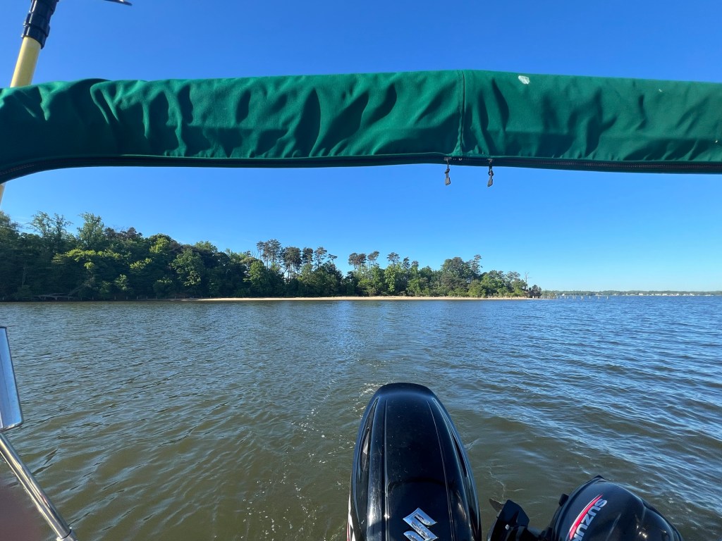 General summary: We planned to head much further North, but the waves were too much so we ducked into the next river on the Western Shore, the Magothy River. Found an anchorage behind a small island that had an unrestricted sandy shoreline. Good holding and not too choppy overnight.