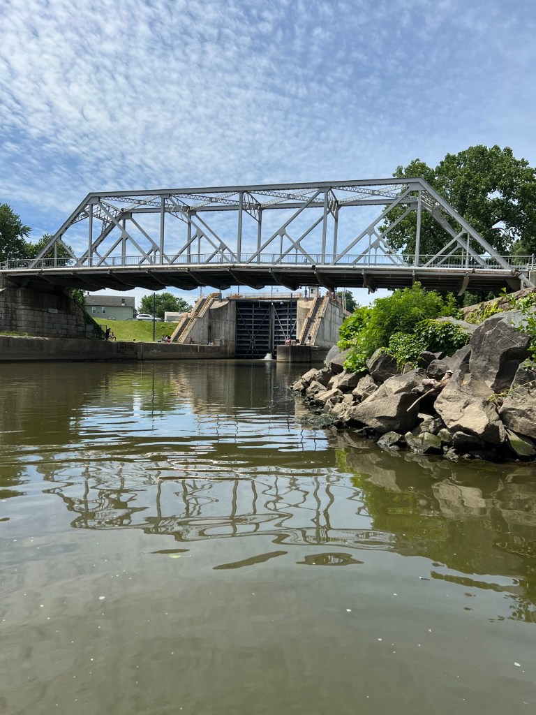 General summary: We continued North, past the town of Albany on our port side then Troy on our starboard side to our first lock in the New York Lock system, Troy lock or E1 (1st lock on Erie Canal). Arrived about 10 minutes before the lock was opening for Northbound traffic and then joined about 6 other boats to easily lock through. We are now officially back in fresh water.