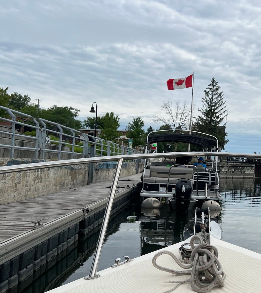 We had decided to bypass Burlington as we’d both been there before. Pulled up anchor and motored North over the US/Canadian border. We had been instructed to tie off at the customs dock, located on our port side less than a mile after crossing, and check in. The customs officers asked us the usual questions (why are you here?, how long do you plan to stay?, anything to declare?, any firearms?) then stamped our passports (they don’t give you a registration number here) and we were allowed to continue on.