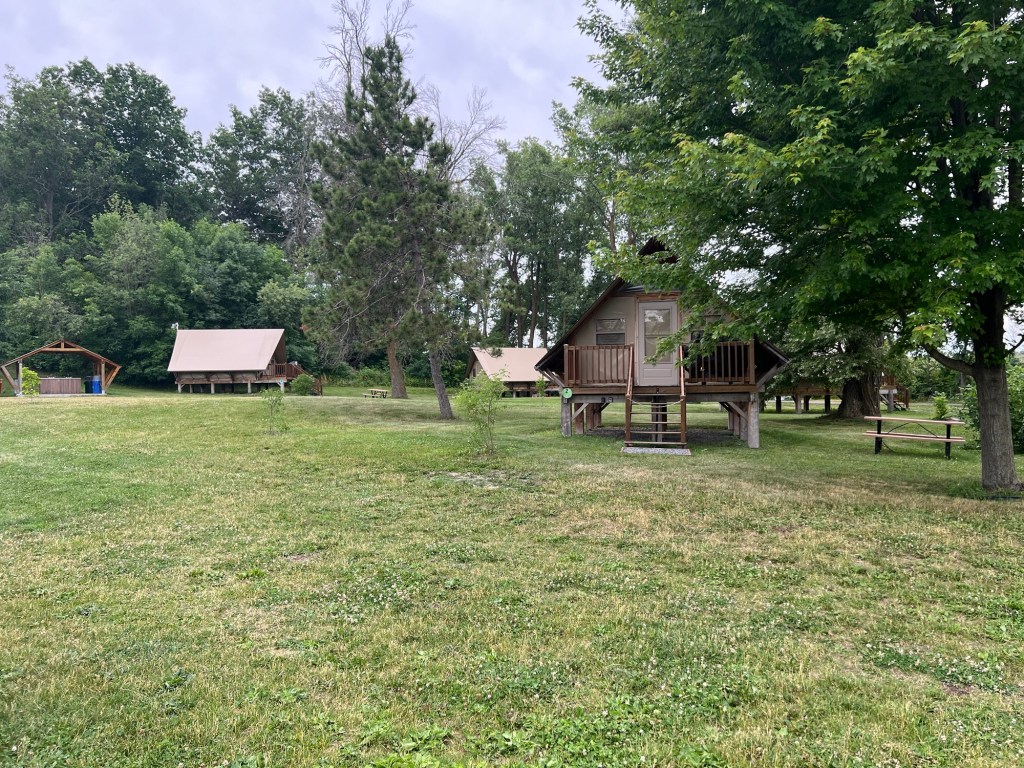 The small nearby town had few services, but there was a park above the lock wall with rentable structures for overnight use, adirondack chairs for resting, and picnic table for dining. We enjoyed docktales that evening in that park with the group.