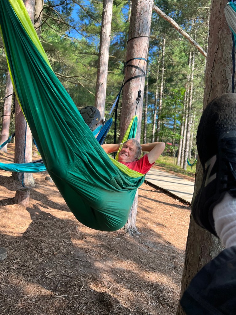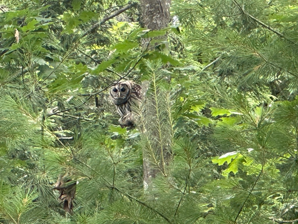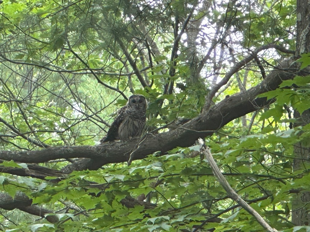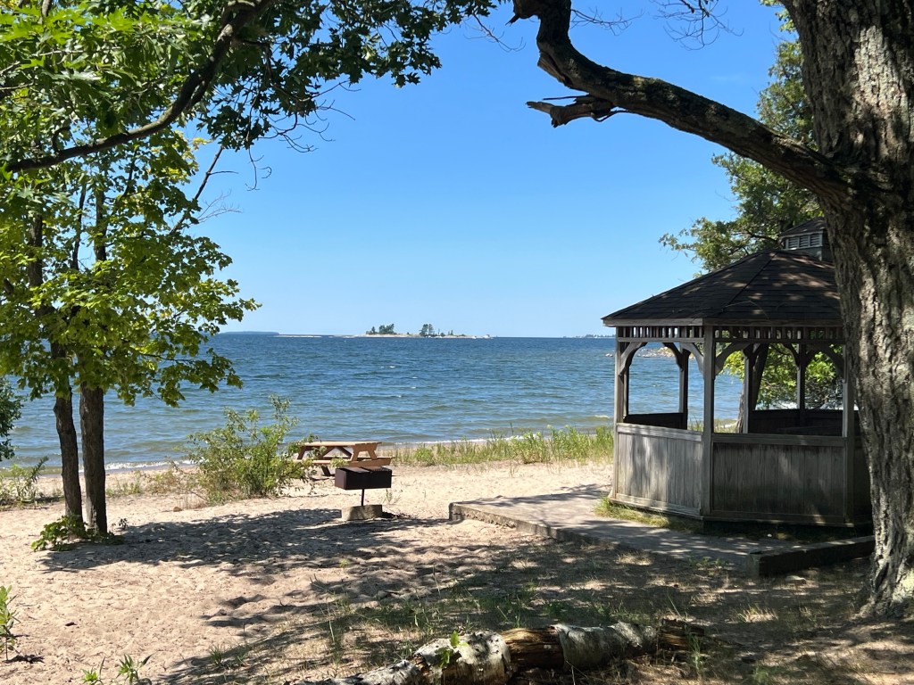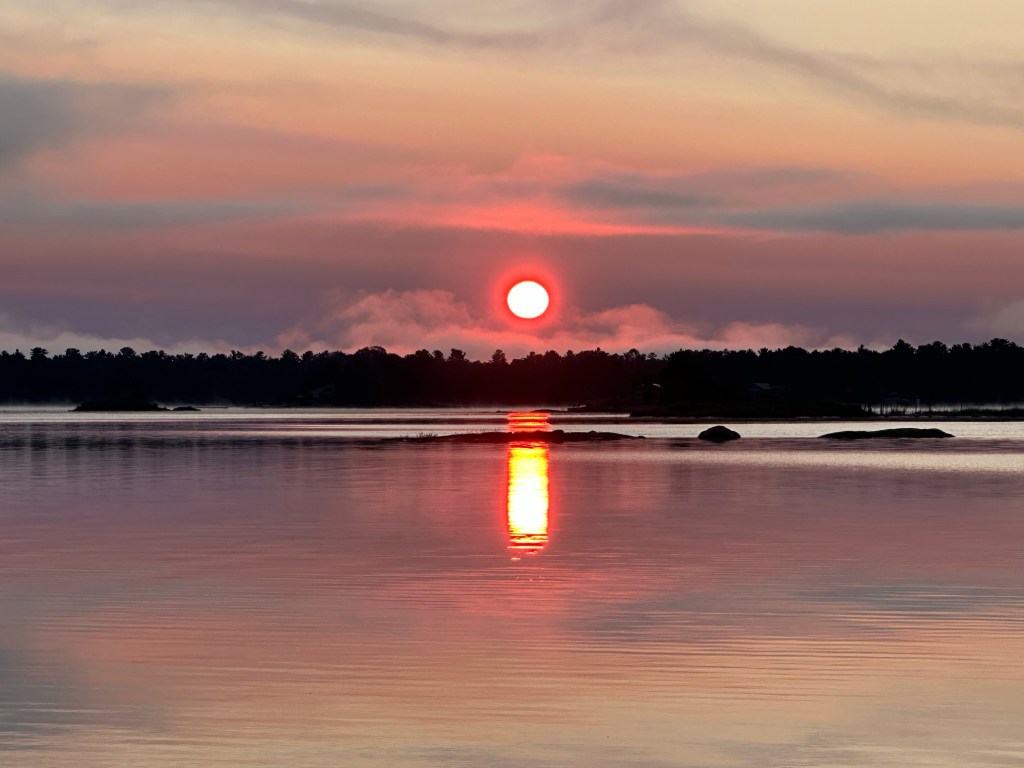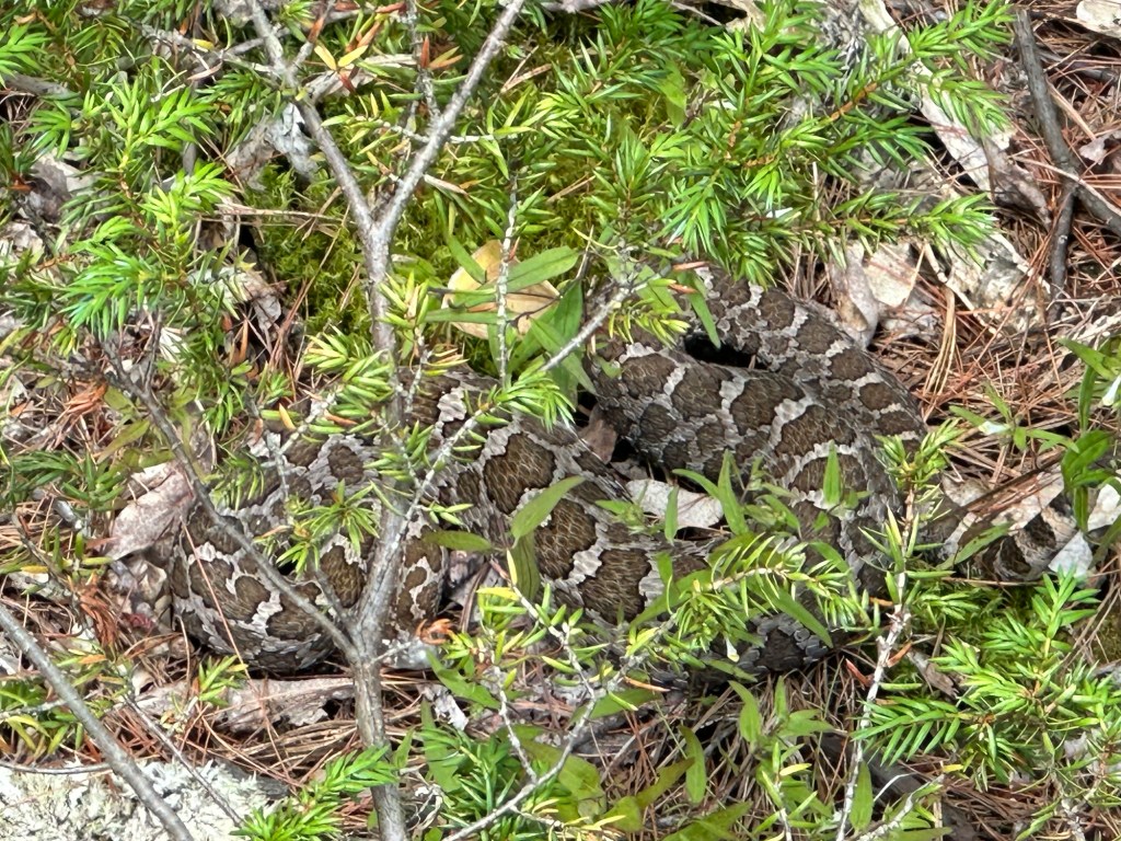 General summary: Our next destination was Beausoleil Island. It is the last Parks Canada-supported area that has public docks covered by our mooring pass. Also a logical close stop just West of the end of the Trent-Severn Waterway and North of Midland. We spent two nights on the rocky Southern end at Thumb Point exploring the Huron trail (very swampy and full of mosquitoes) and Georgian trail (more rocky and windswept, with few bugs) on day one. On the second day, we hiked the middle section to a lighthouse and back, erroneously traipsing through a private YMCA camp. We thought we’d have to spend the next night at a marina to charge our batteries, but a taxi boat delivering a camper from Honey Harbor gave us free bags of ice (an advertisement effort for Maple Leaf associated marinas), so we were able to put our food into the cooler and turn off the refrigerator, then motor to Oaks dock and spend the night without draining them too much. On the fourth day, we did motor to Honey Harbour to stay at the Bluewater Lodge and Marina to power and provision. Was rainy and windy anyway, so a good day to be moored. On the fifth day we got our first taste of the “small craft channel” (at times super narrow and tortuous between rock outcroppings, but well explored and marked with reasonable safe dephths) to reach the North end of the island, which was much more forested. Also got to meet the namesake of the Massasauga trail, the local rattlesnake, as well as an observant owl.
